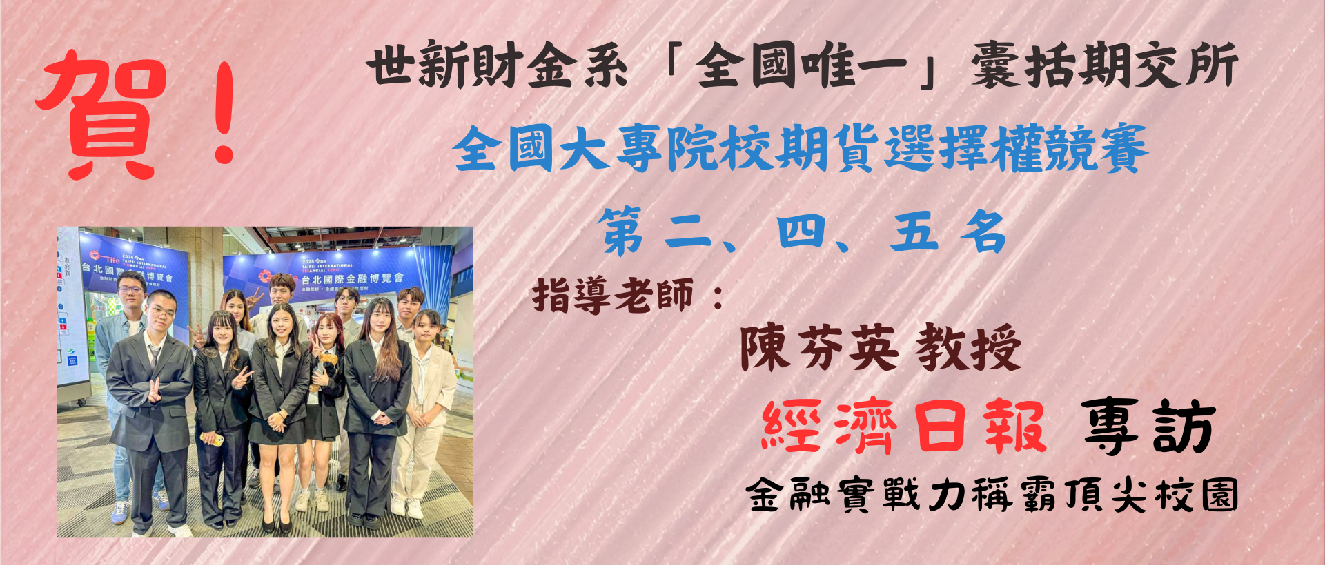 大專模擬交易競賽世新稱霸 財金系3隊學生大放異彩